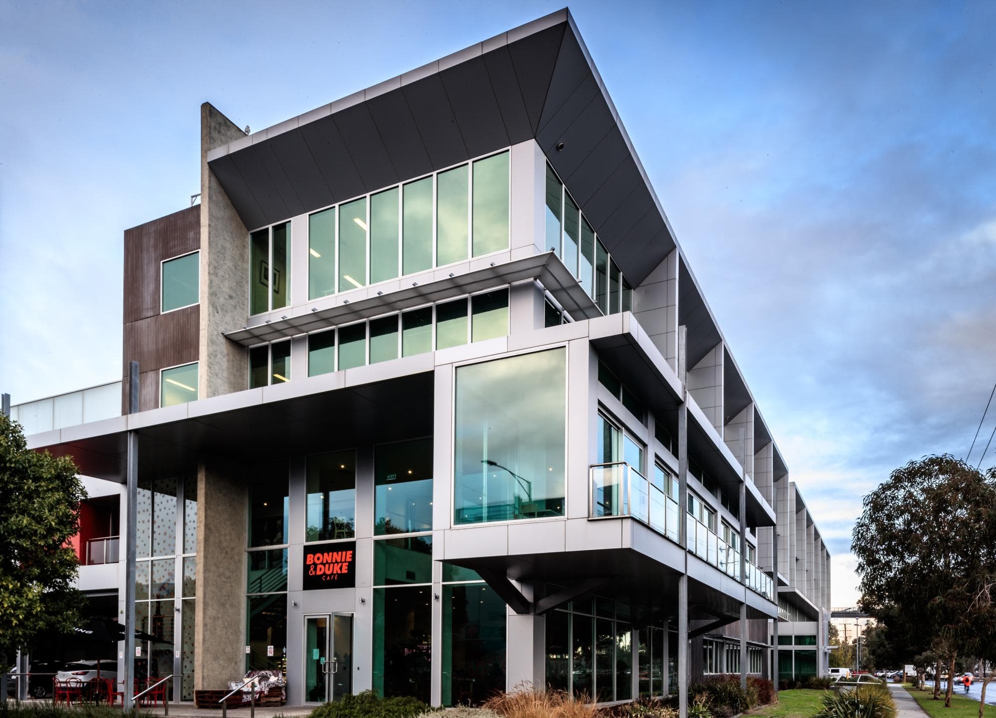 MondoClad solid aluminium panels in Silver Metallic bring a sleek, contemporary finish to 262 Lorimer Street in Port Melbourne, making a polished statement across this mixed-use high-rise development.